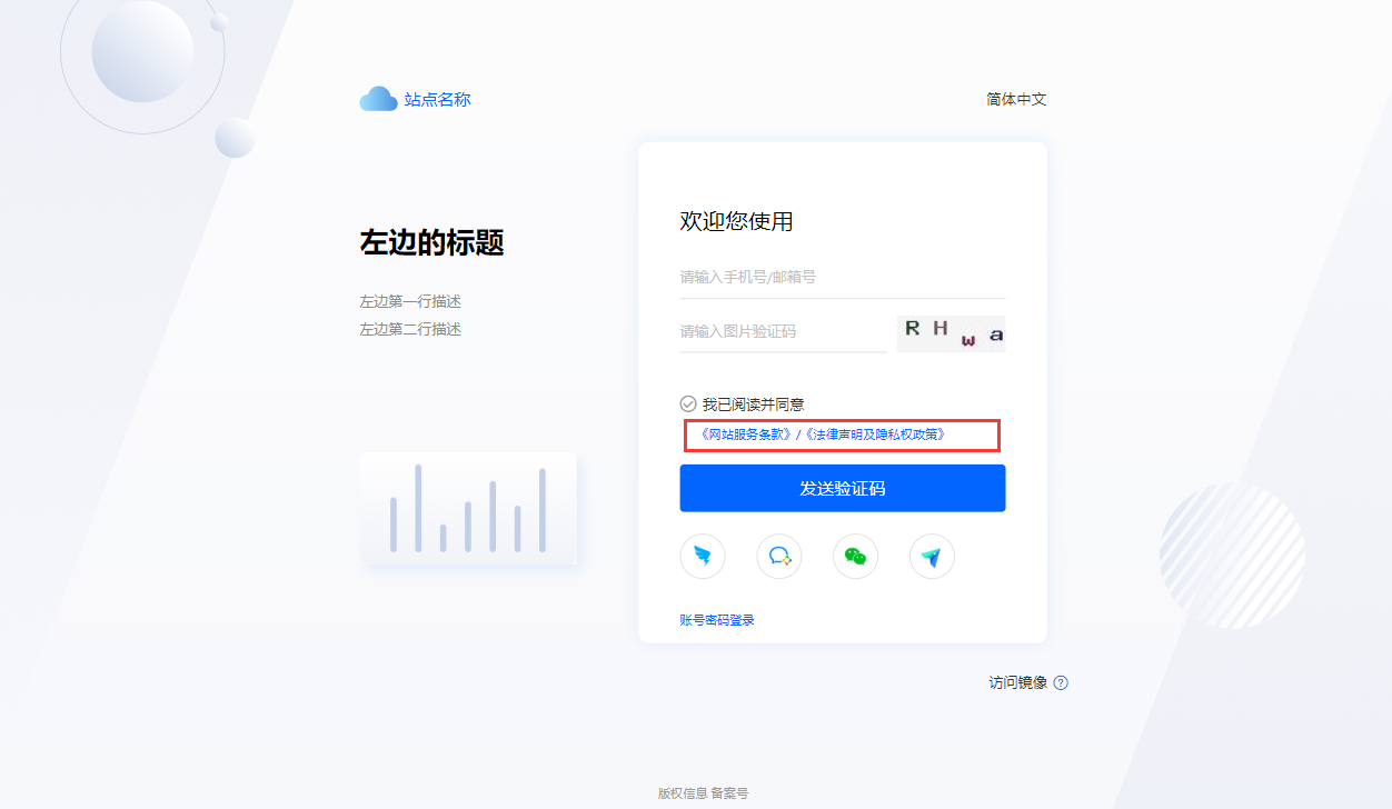 网站服务条款主要是在注册登录页面显示,当用户同意协议后,才可以进行对应的操作。
