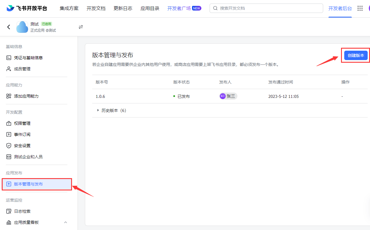 在版本管理与发布页面创建版本