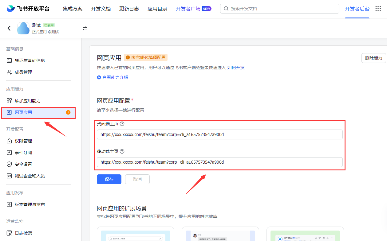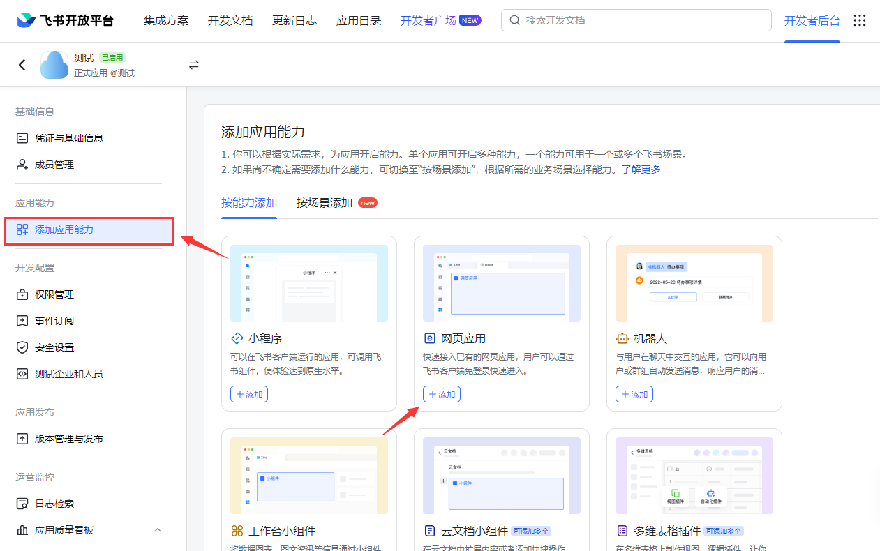 1、在添加应用能力分类下添加网页应用