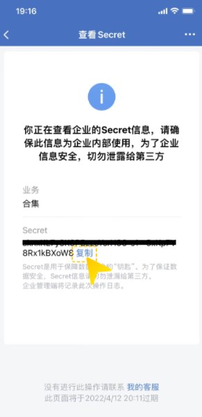 4、在 企业微信 Secret点击查看