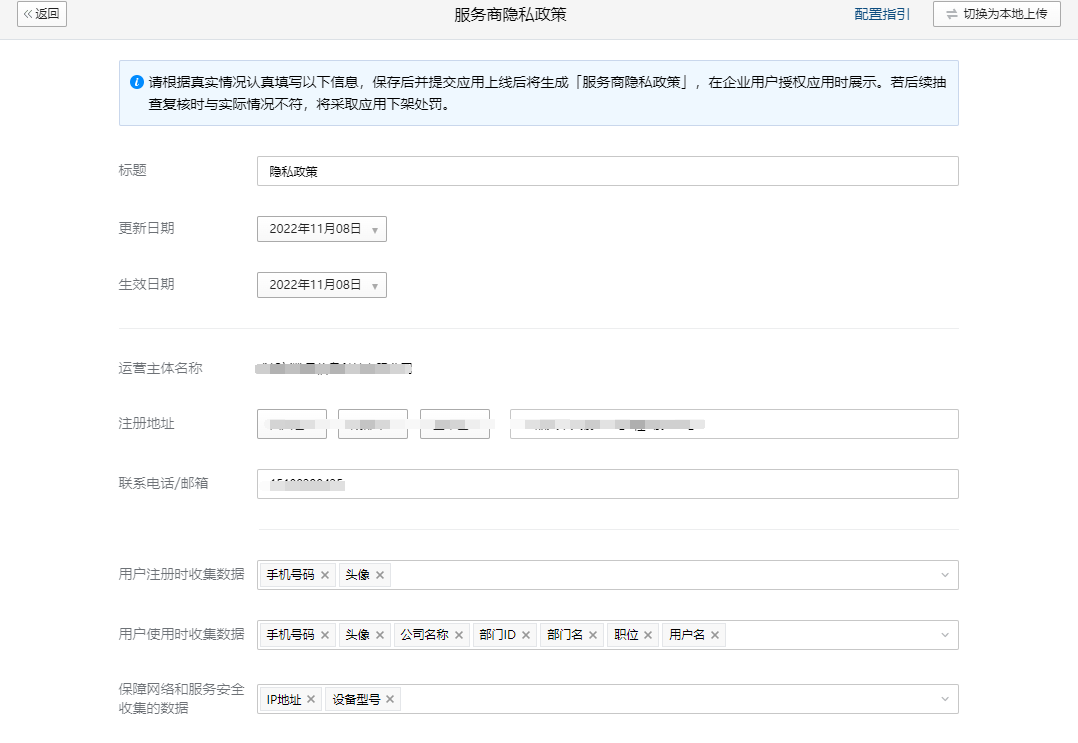 13. 服务商隐私政策上传