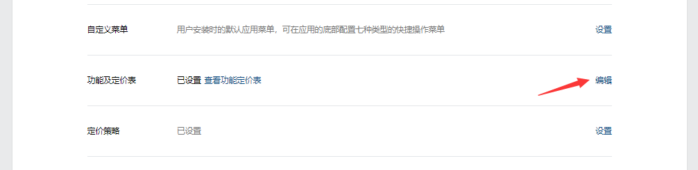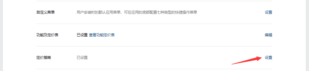 【应用开发】->【网页应用】,进入新添加的应用,找到定价策略,进行设置(可添加设置为免费版、会员版等,具体按自己公司收费标准进行调整)