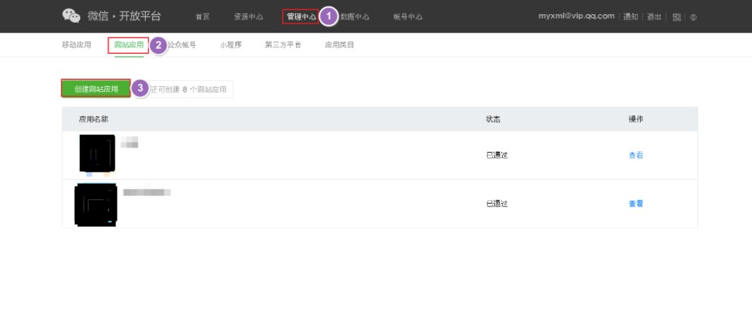 操作步骤:管理中心->网站应用->创建网站应用