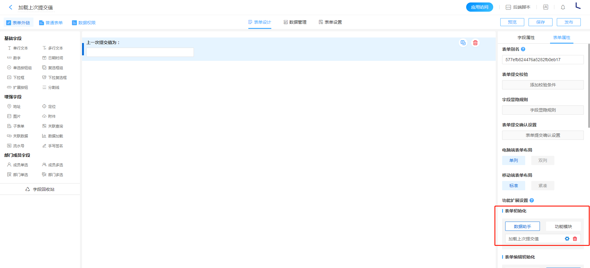 点击此链接【数据助手 - 加载上次提交值】可以跳转至速搭官网 >>> 解决方案 >>> 数据助手功能示例进行实际操作效果演。