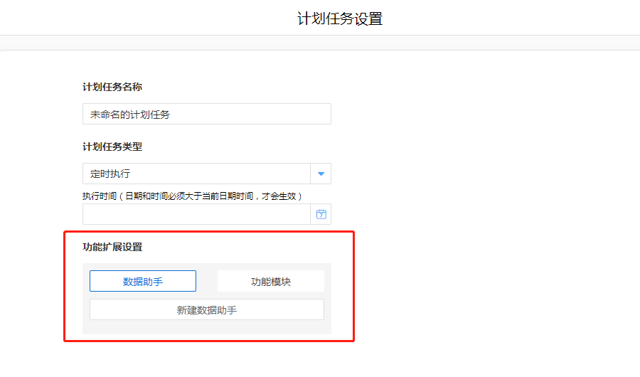 1. 进入流程表单的计划任务配置页面,点击数据助手进入助手配置