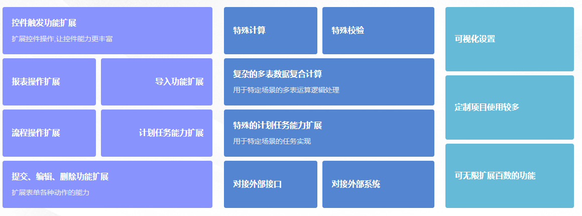 尤其对于垂直细分领域的业务(如:物流系统中需要实现自动出库,定时、定点、定量配送),常规的功能应用无法满足其碎片化、个性化的应用需求,通过python能够对现有的控件、表单、报表、方案进行实时扩展升级,即时满足更多元的场景应用。