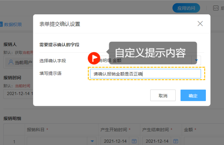 针对不同的业务场景可以自定义提示的内容,比如提前告知易误操作、提交错误内容等,让操作者主动去确认输入的重要数据无误。