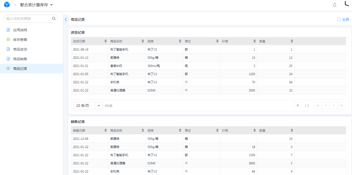 使用聚合表能够清晰明了记载进货与销售记录,方便超市员工及时掌握商品库存信息通知补货。
