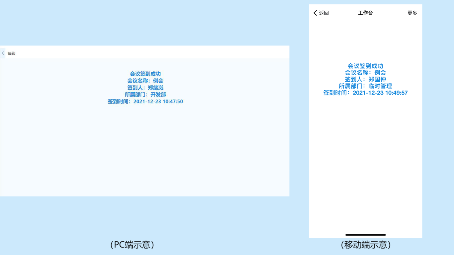 · 在员工参加公司会议时,第一时间反馈签到情况及员工个人信息,及时核对个人信息及会议基本情况。