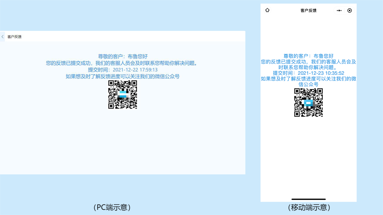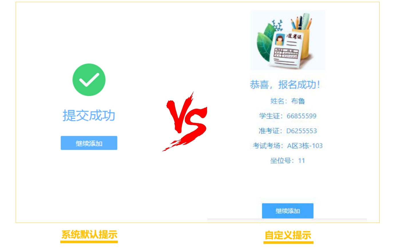 适用于提交表单后,需要给提交人反馈的各种场景,如:活动申请反馈、课程报名反馈等。