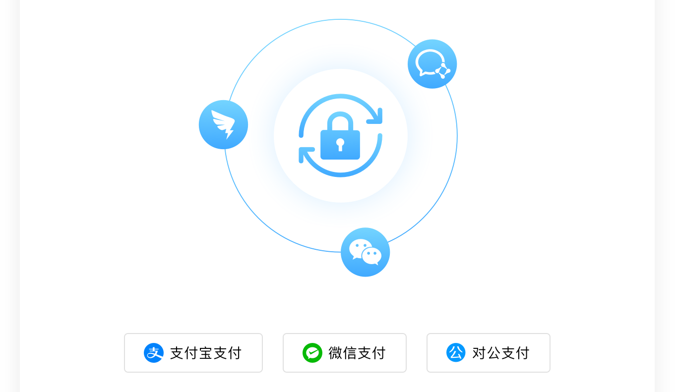 可以自由绑定企业自己的微信公众号、企业微信、钉钉、飞书等三方平台,支持绑定微信支付、支付宝、网银等支付通道,和企业内部通讯工具无缝协同