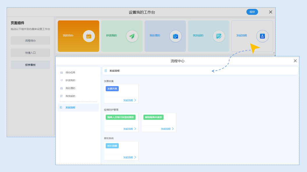 使用自定义工作台能够帮助企业传递个性化的文化理念,提升员工操作的敏捷度,带来更科学高效的办公体验。