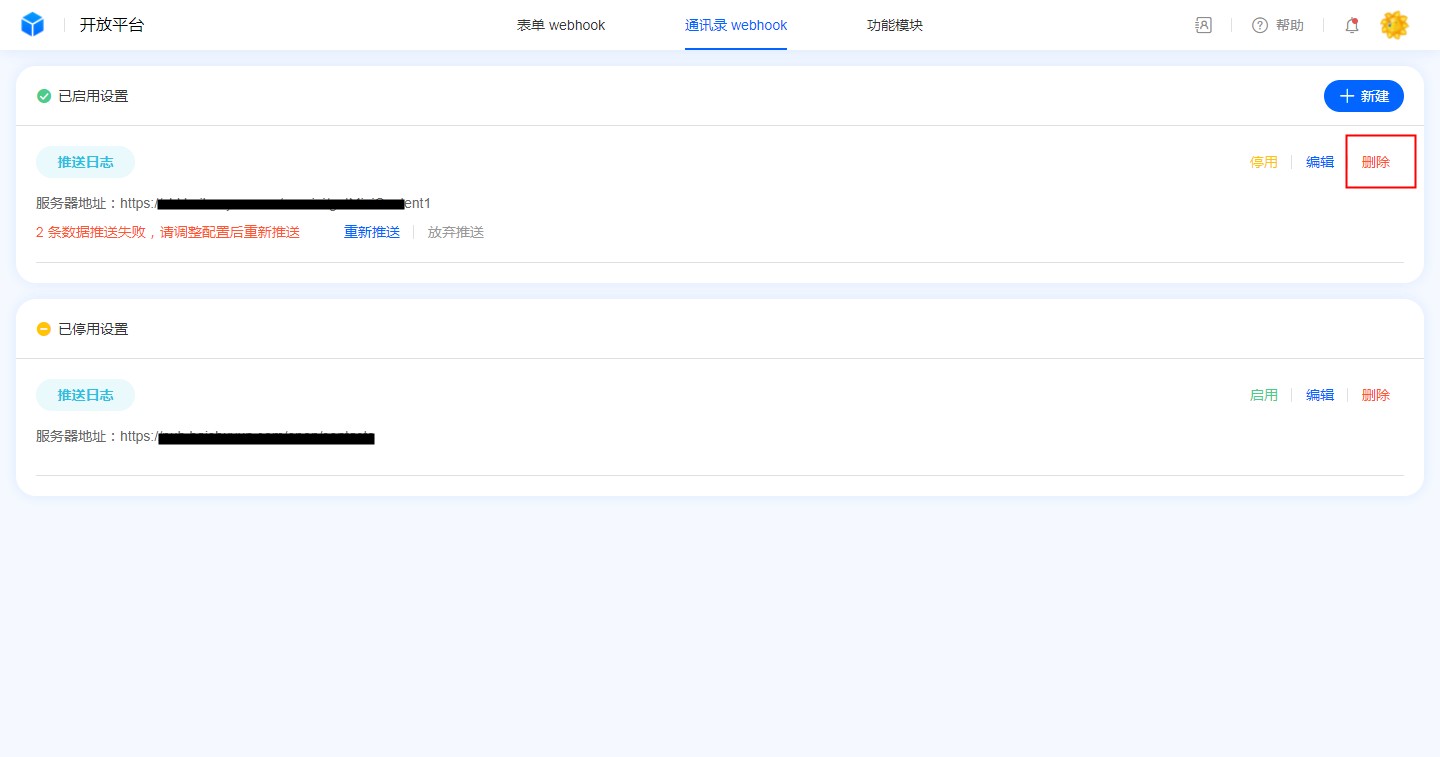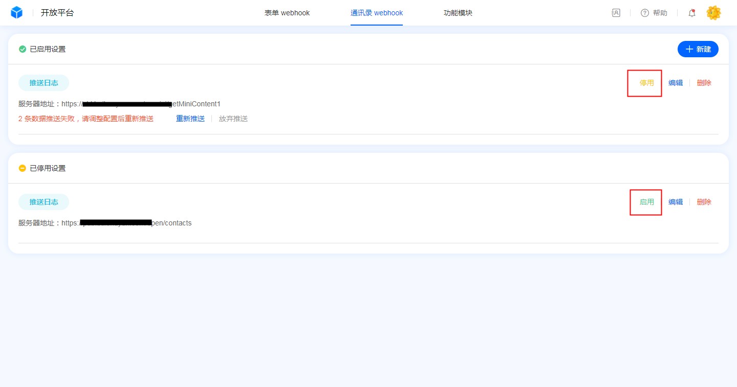 • 通讯录webhook