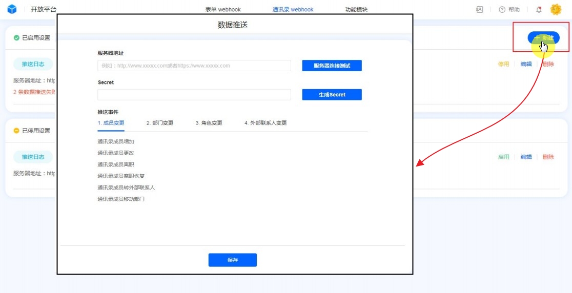 • 最多支持新建5个通讯录数据推送。