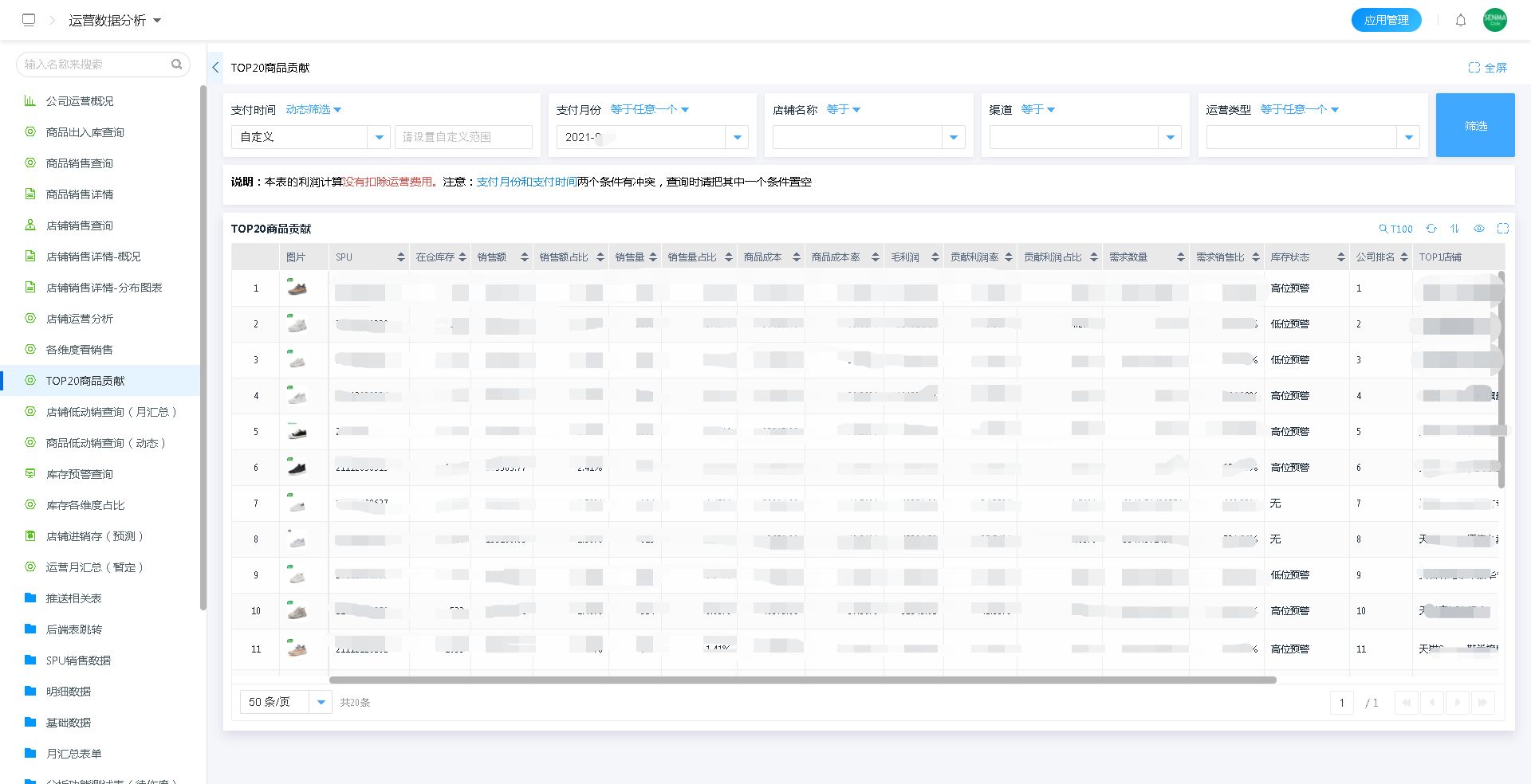 通过使用速搭平台对数据强大的计算能力,对商品销售数据进行分析,在千万基础数据中计算出TOP20商品贡献的商品,有助于企业在后续的运营、推广等环节针对性的做出正确的决策。