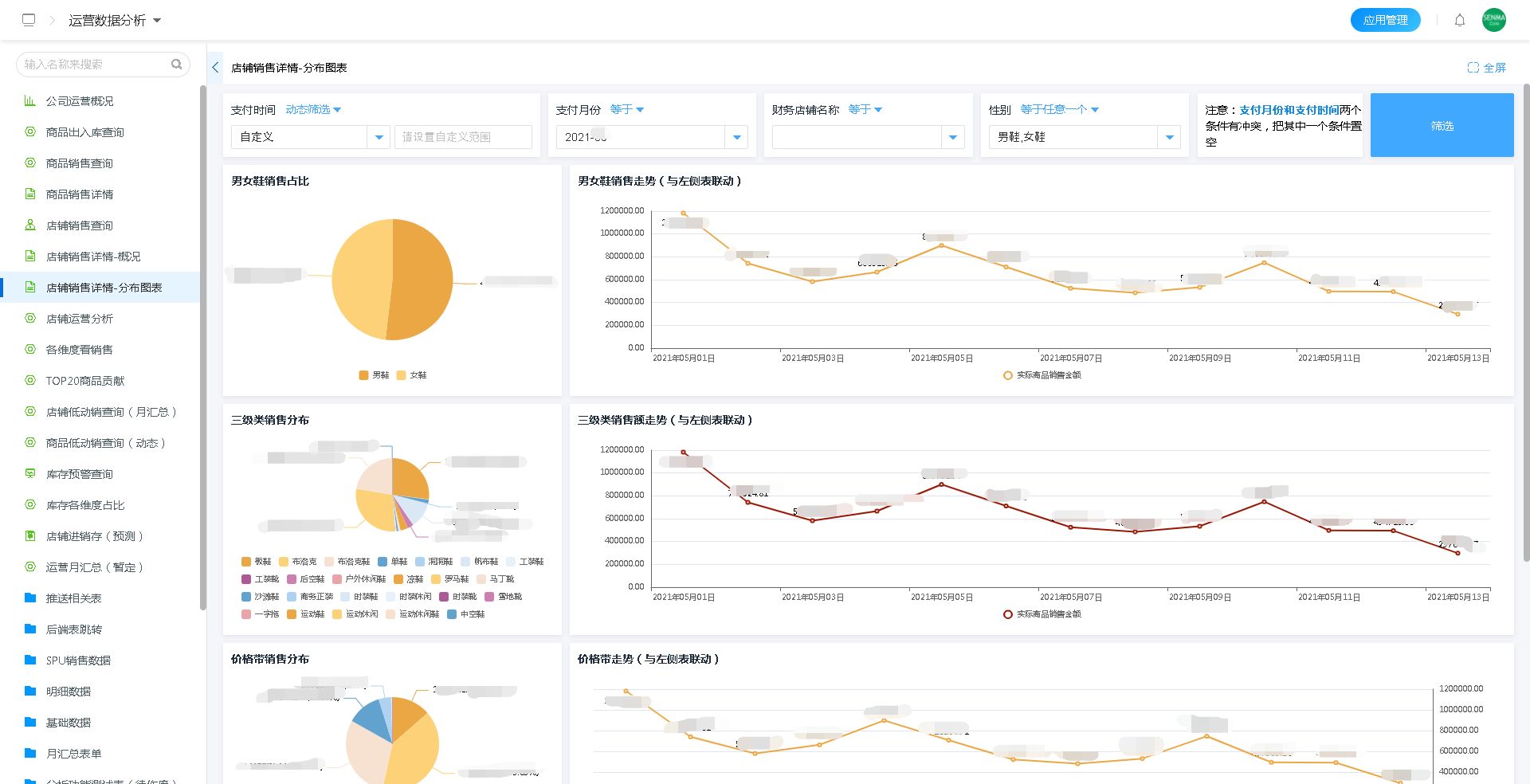 支持将千万销售数据汇总转化为可视化图形报表,将每个店铺的销售情况,通过清晰的图表,非常直观的展示出来。