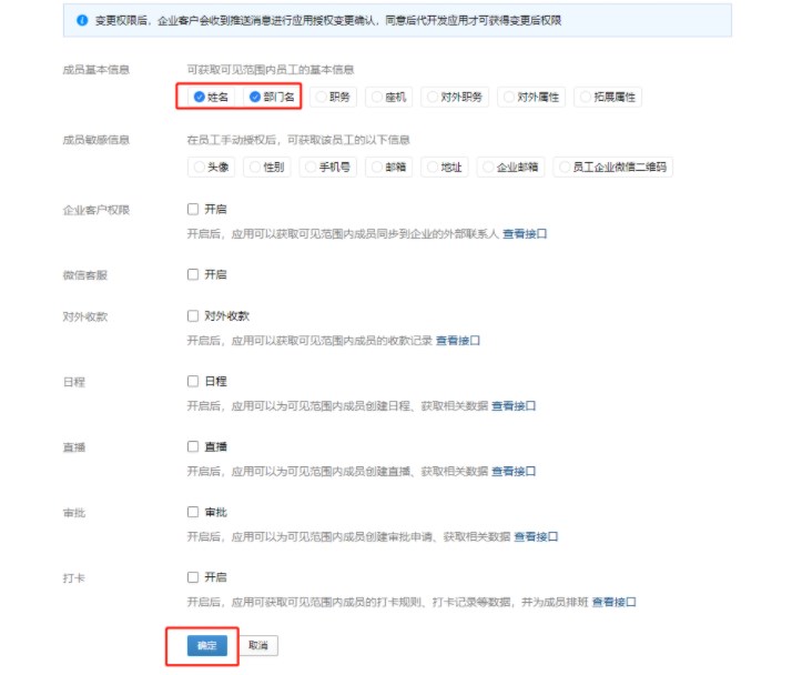 4) 企业客户管理员收到代开发应用权限变更消息,若企业同意权限则服务商所选择的自定义权限立即生效。