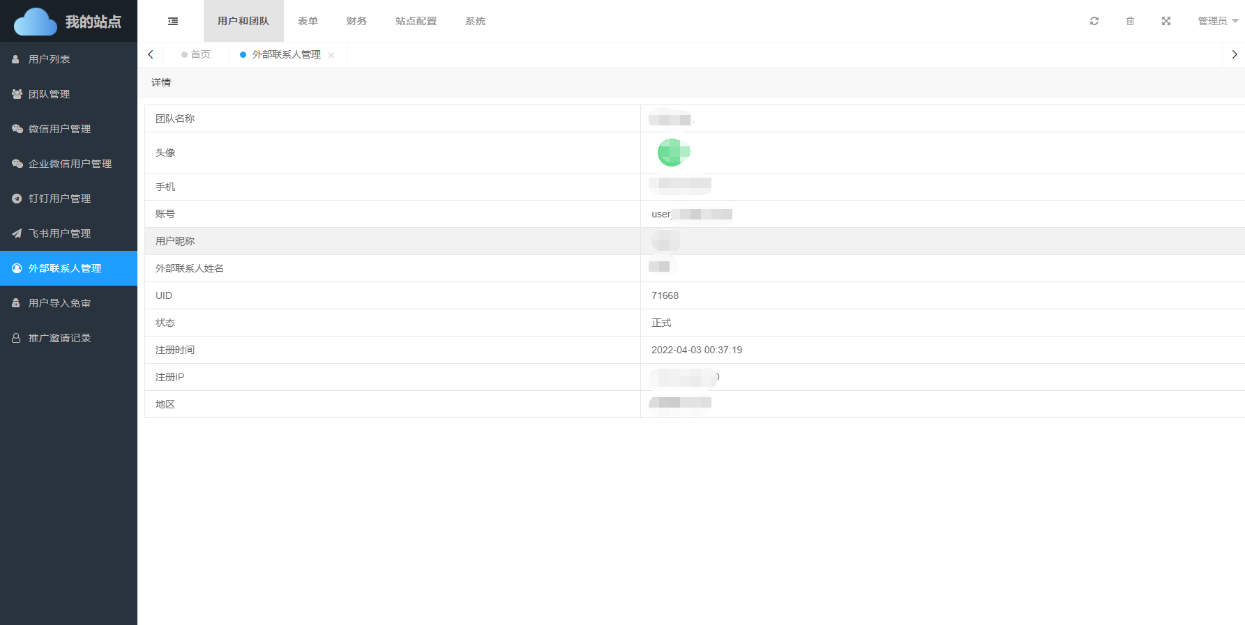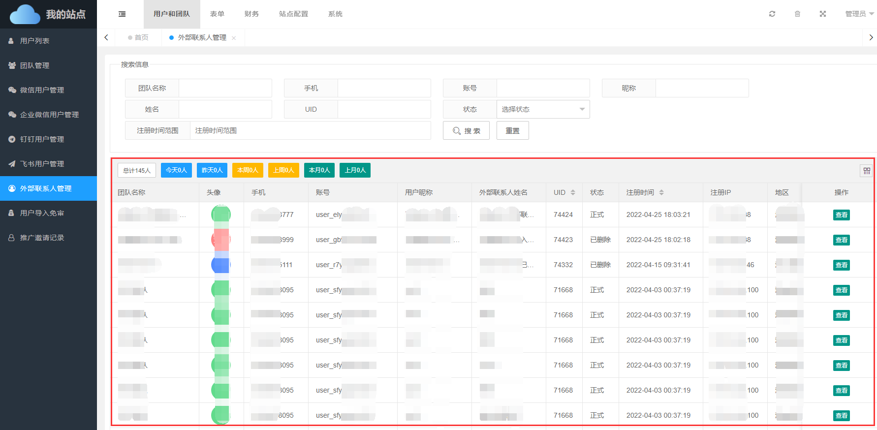 • 状态:外部联系人账号状态分为已邀请、正式、已删除