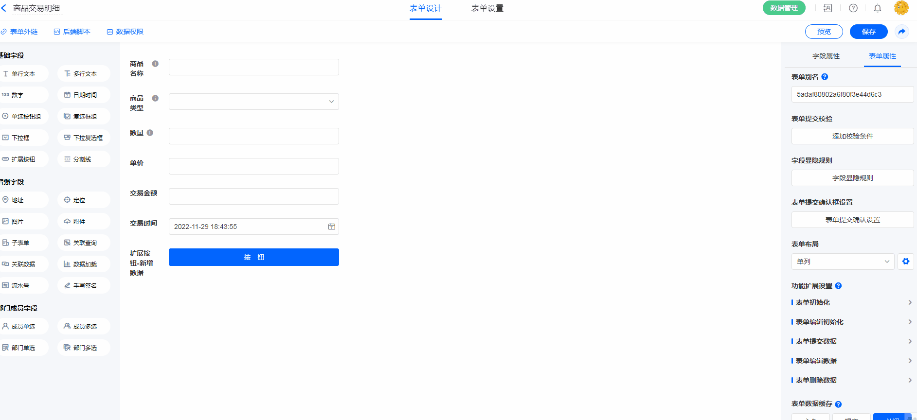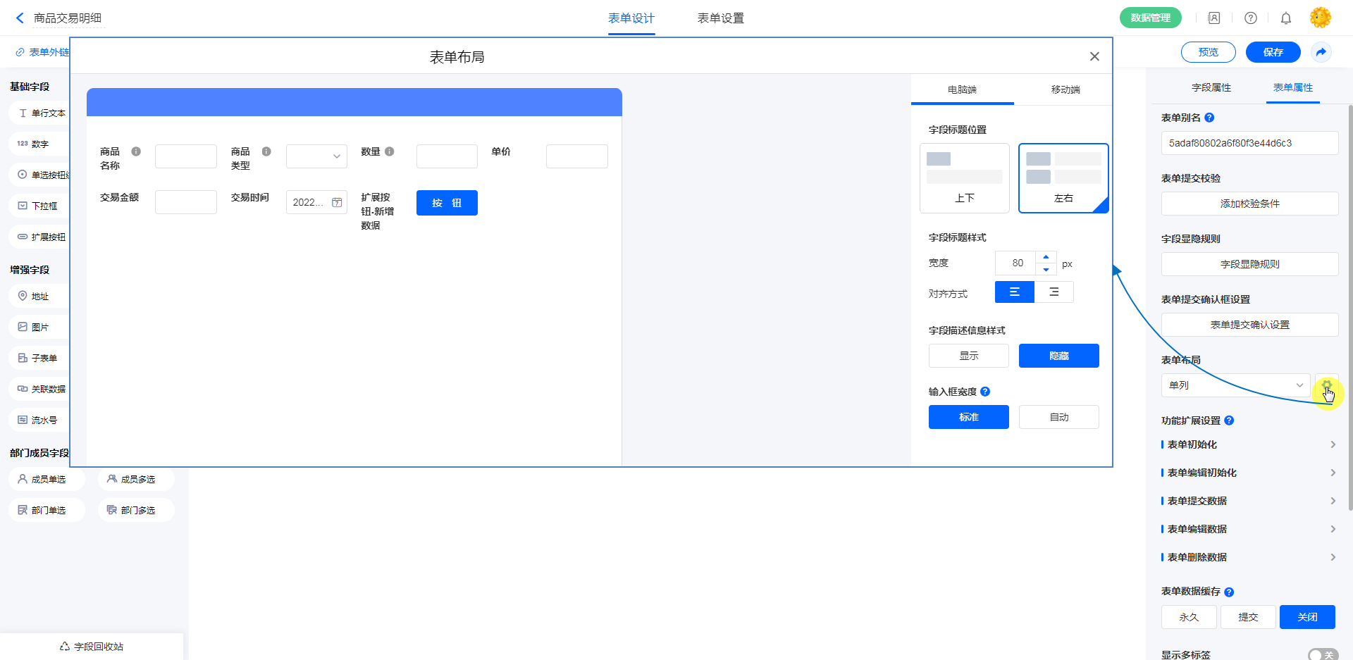 注意 :子表单、关联查询、关联数据、数据加载、分割线、数据加载字段不支持 [左右] 布局