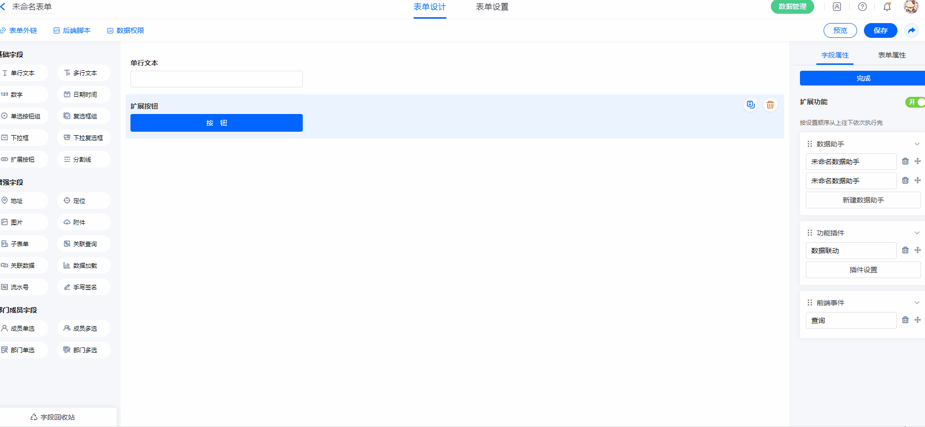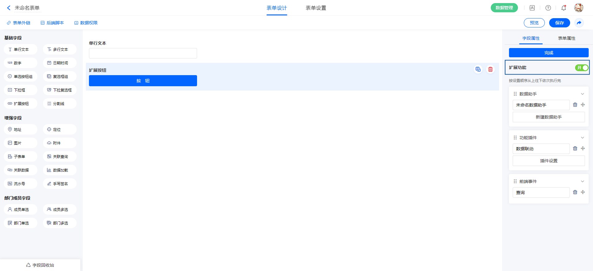 原来扩展体系只支持选择 [数据助手] 、[ 功能插件]、 [前端事件]、 [后端事件]中的一种进行设置,优化后支持这四种功能扩展同时设置,并行触发。