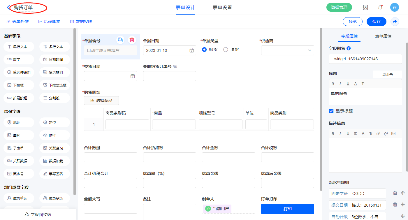 该表设置见云进销存-采购管理表单【商品管理】字段及表单属性设置章节介绍;