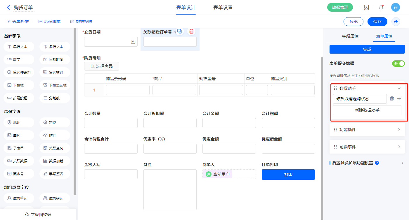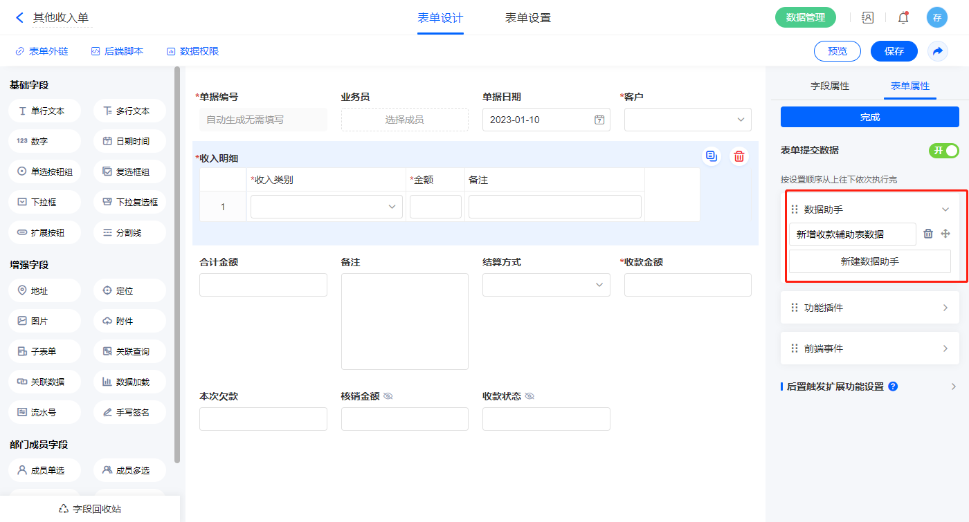 • 数据助手子表单