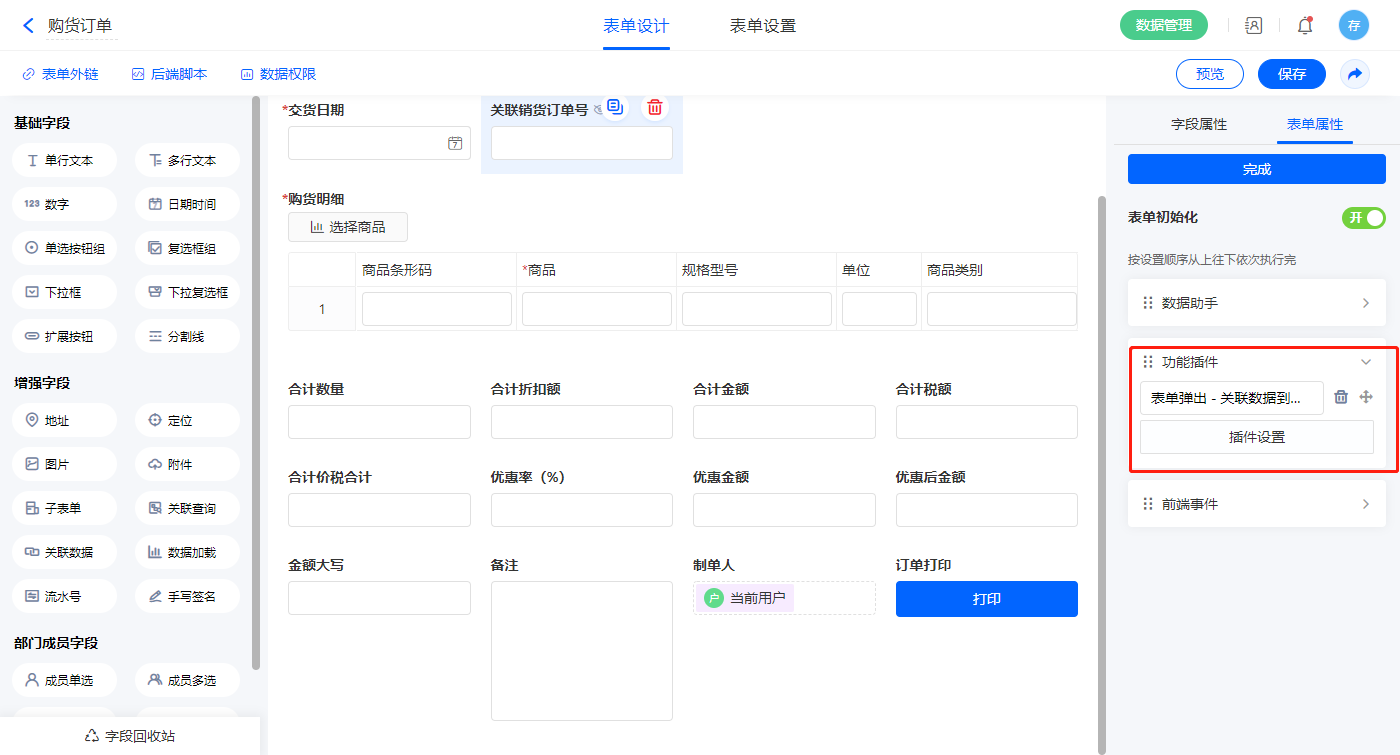 2)表单初始化新增功能模块【表单弹出-关联数据到子表单】;