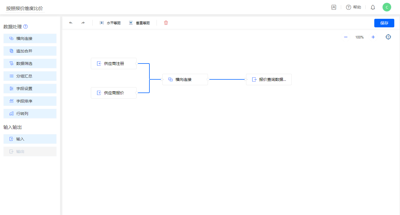 1)该demo应用运用到一个数据视图【按照报价维度比价】;