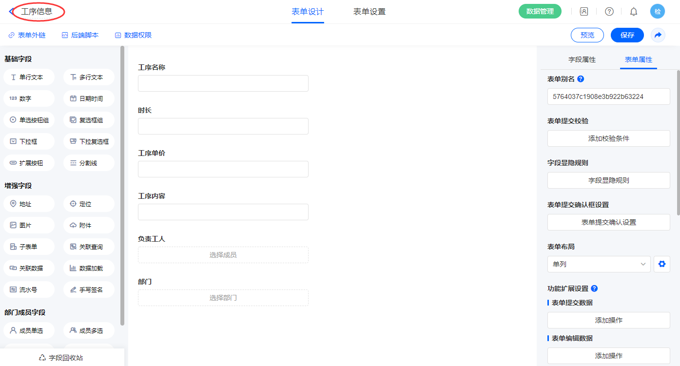 | 产品编号 | 单行文本 | 工序总金额 | 数字 |