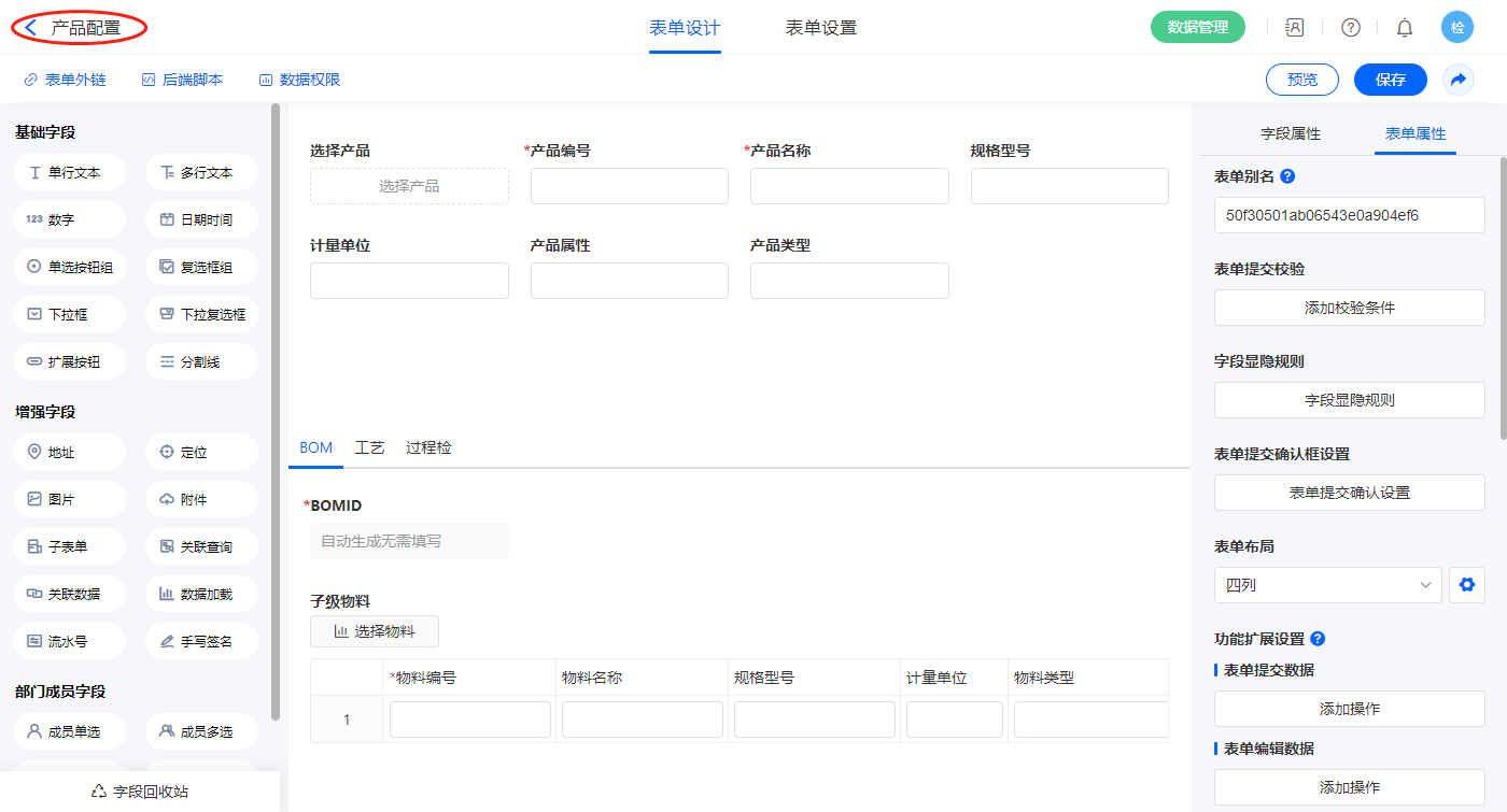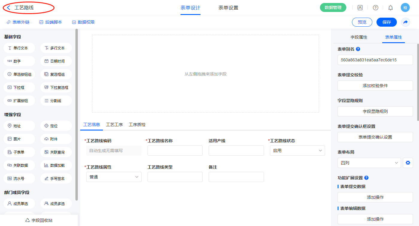 • 2.3、表单【工艺路线】字段及表单属性设置