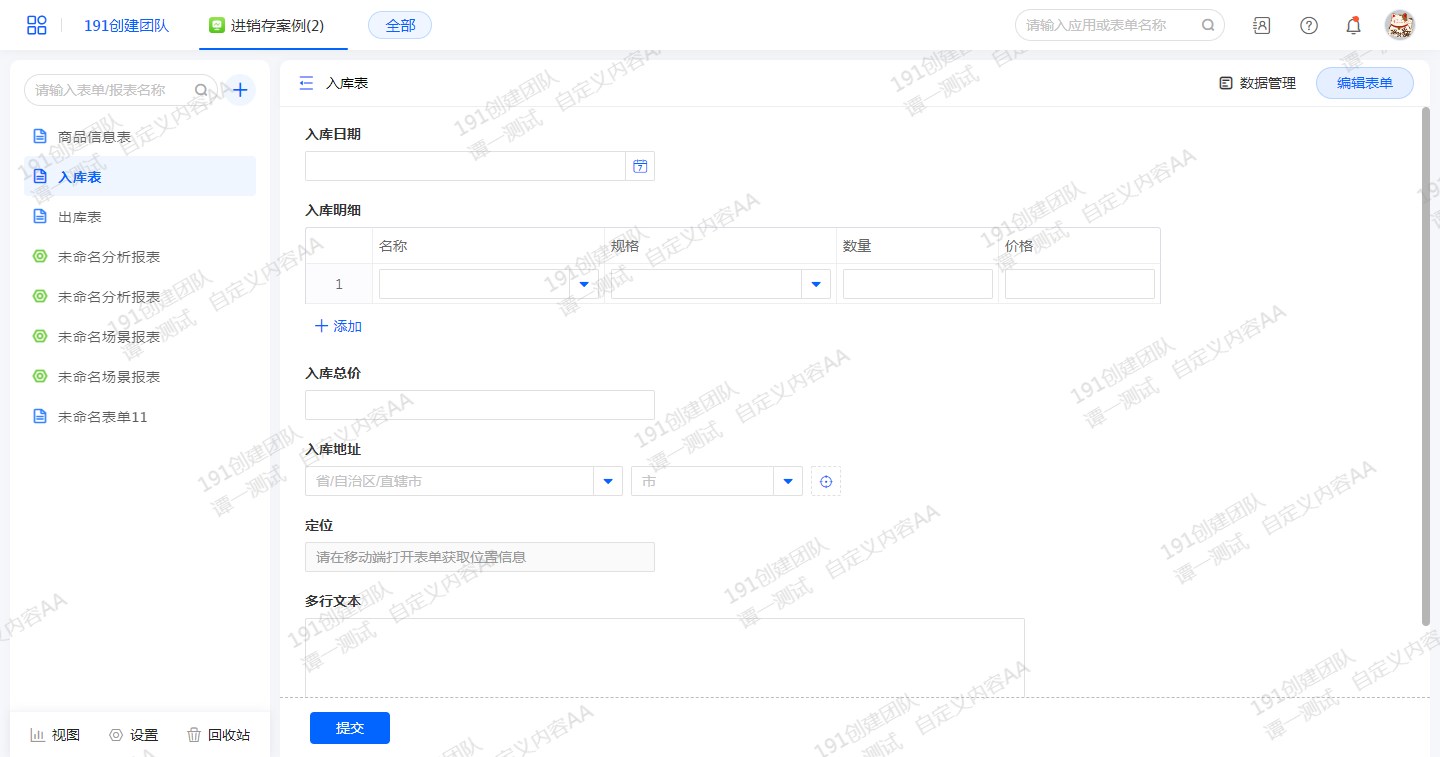 注意:在应用访问页面有水印;在应用设计、账户中心、报表外链、表单外链、表单公开查询链接、数据外链等页面访问时,无水印