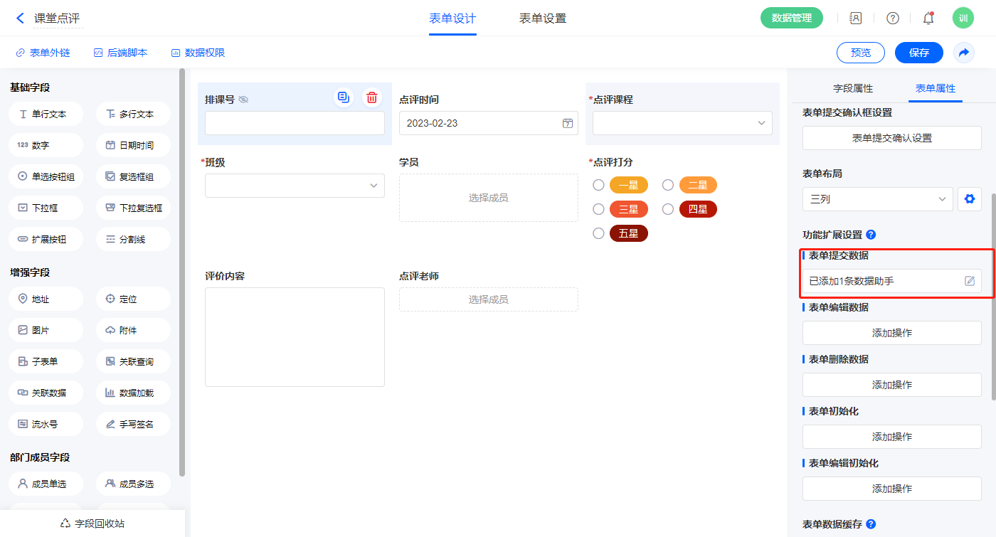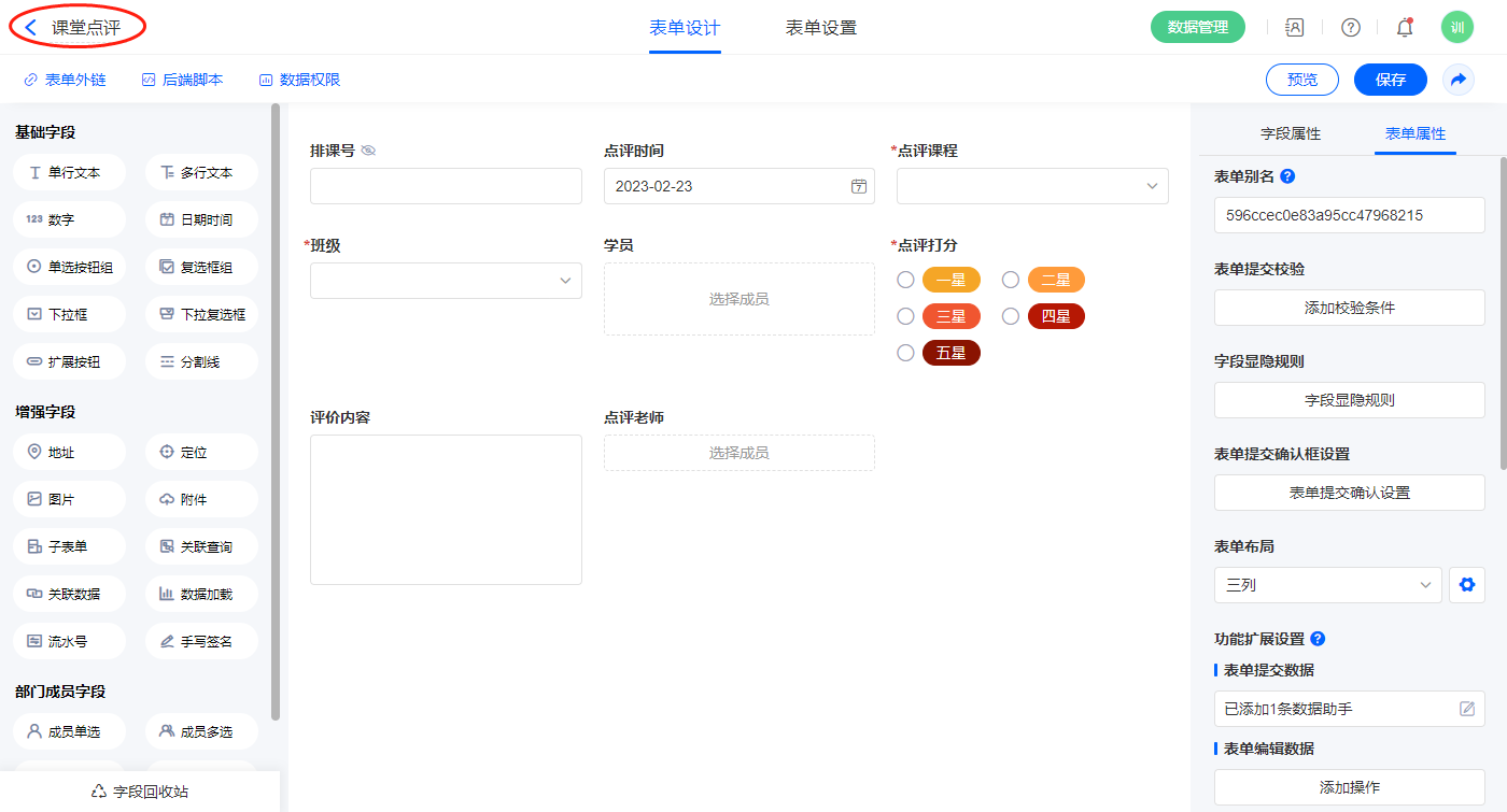 2.5、表单【课堂点评】字段及表单属性设置