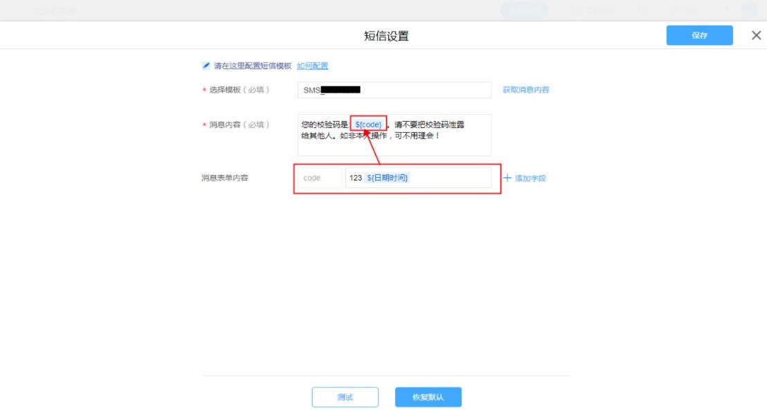 普通表单设置短信消息模板