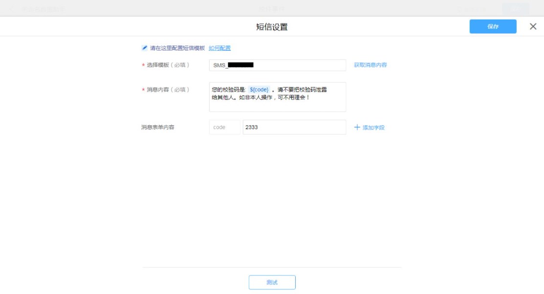 • 普通表单设置短信消息模板