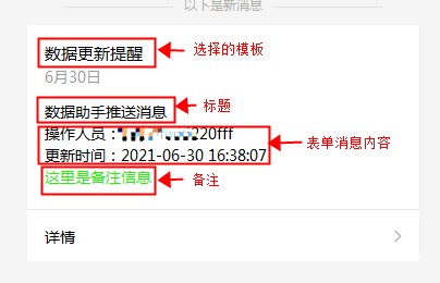流程表单、普通表单、数据助手消息设置时选择微信提醒时,可设置微信消息模板。