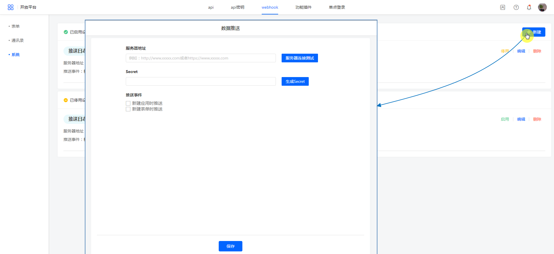 系统webhook管理