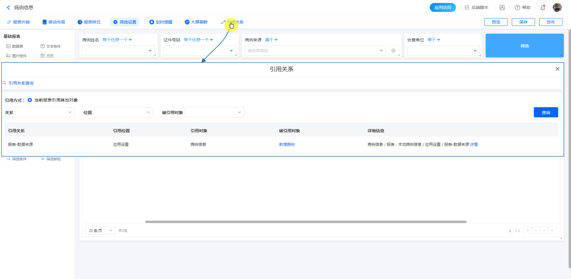 • 报表设计>>引用关系