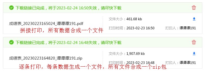 • 逐条打印:每条数据生成一个打印文件,所有文件生成一个压缩包。