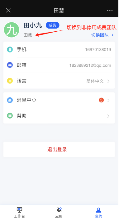 正常切换到非停用成员的团队:
