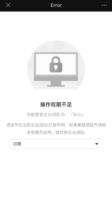 成员登录该企业时,将提示账号已被停用: