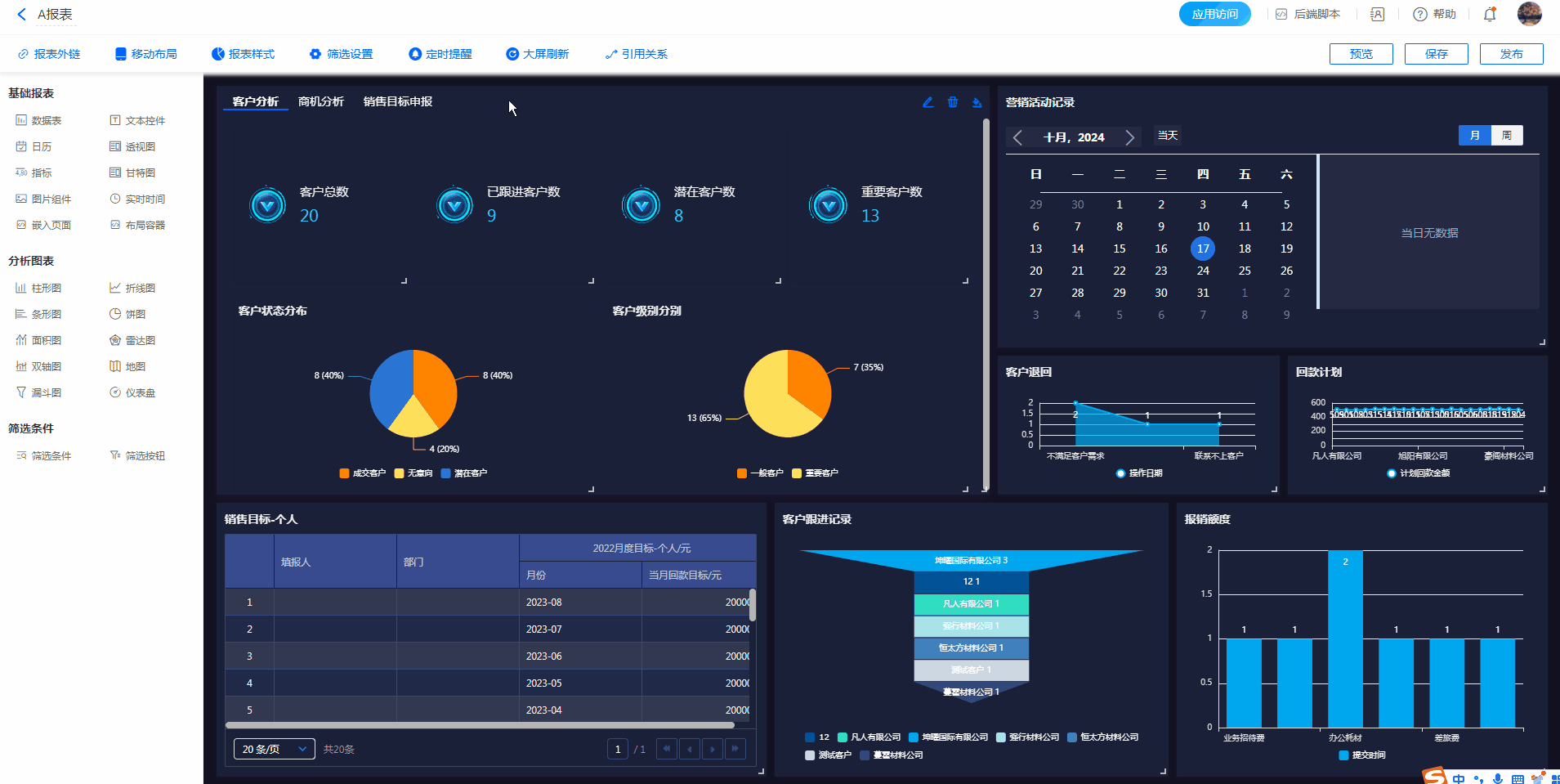 5)报表最多可添加50个图表/组件,布局容器组件也受此限制。