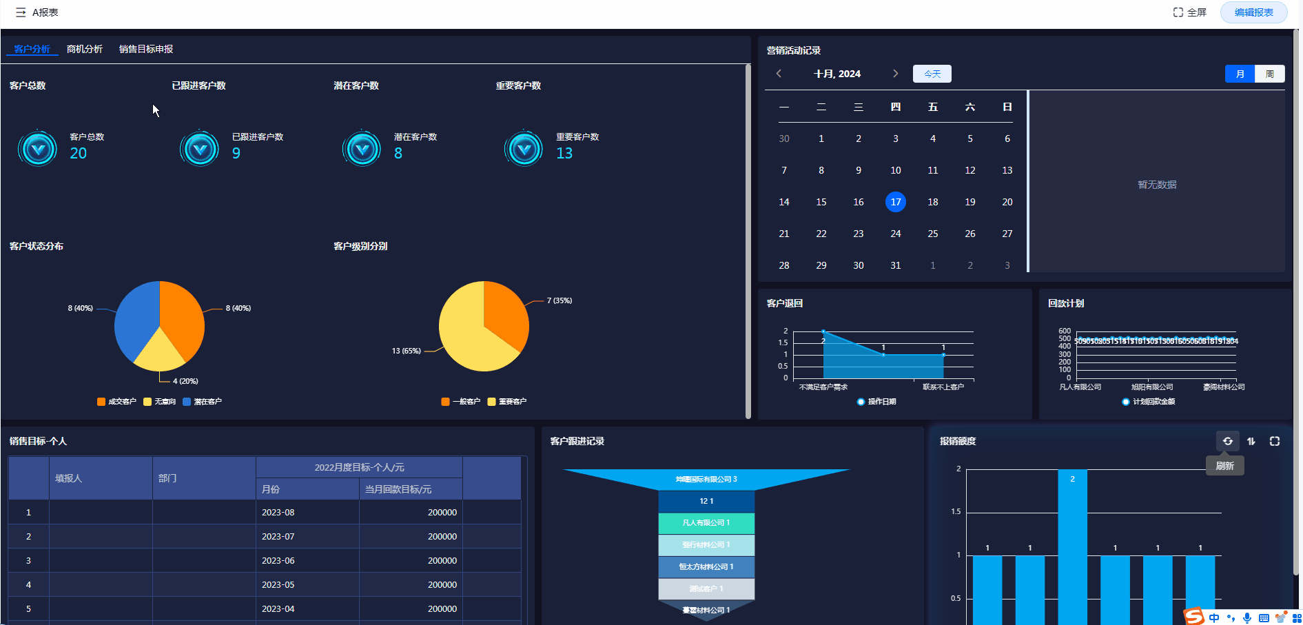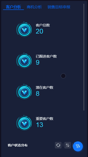 如下图,将客户分析相关数据,集中放在一个布局容器中进行展示: