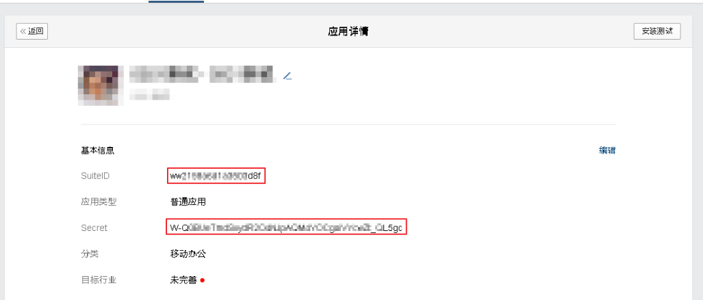 第二步:应用创建完成后会生成 SuiteID和Secret,如下图