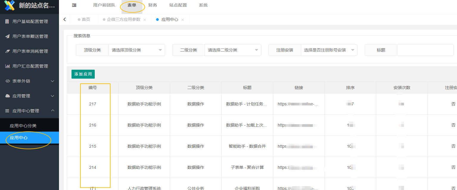 应用中心入口:【表单】->【应用中心管理】->【应用中心】