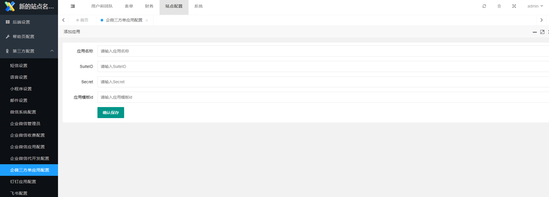 前提:站点已完成企业微信应用第三方模式配置,详见企业微信应用第三方模式配置。