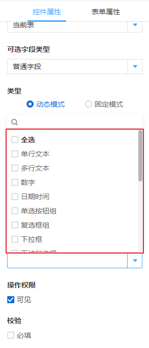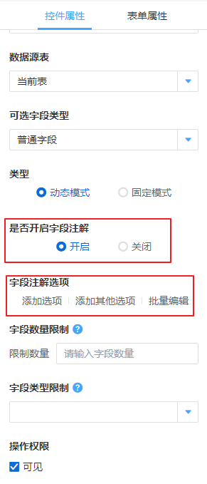 操作权限仅可设置字段是否可见,勾选即为可见。