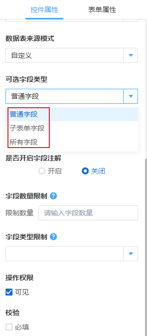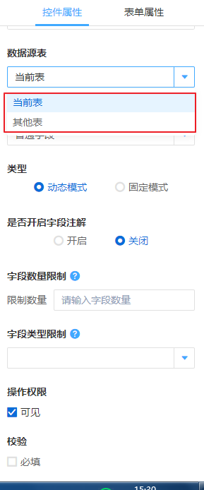 需配合【表单来源】字段一起使用,当设置【数据源表】为其他表时才出现此设置,可以根据数据源表的变更而选择其表的字段。