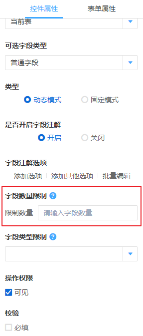 字段数量限制是指添加字段的数量限制为多少,默认为空,不做任何限制。