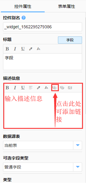 对该字段的解释或说明,可输入文字、设置颜色、插入超链接、插入图片。