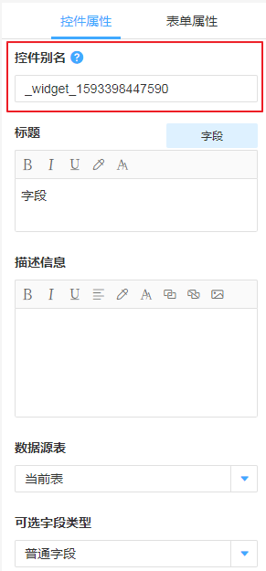 指该字段的名称,其默认值为字段类型,可自行修改。